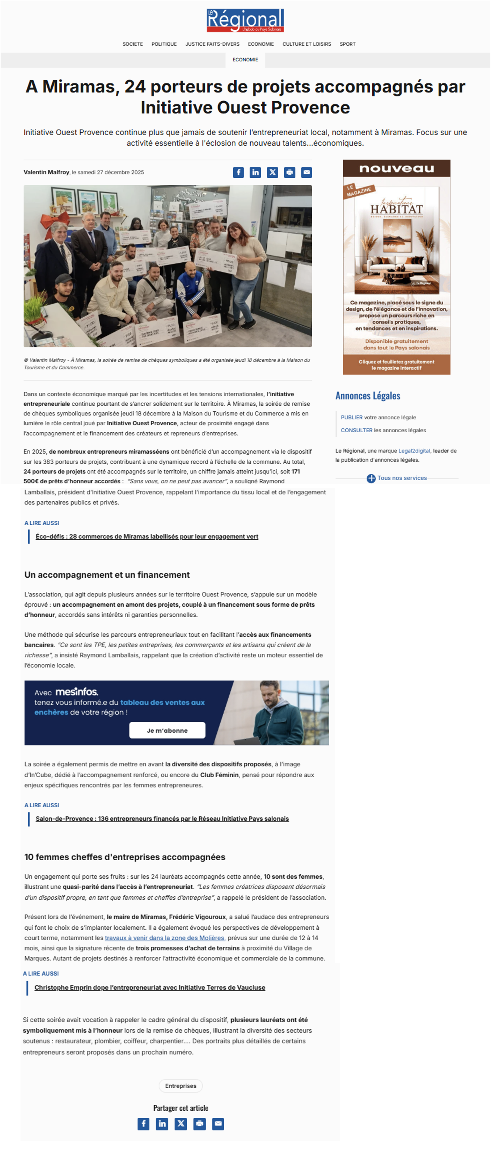 En 2024 les actions d'Initiative Ouest Provence sur le territoire ont permis la création ou la reprise de 99 entreprises et le maintien ou la création de 211 emplois. - Engagement republicain